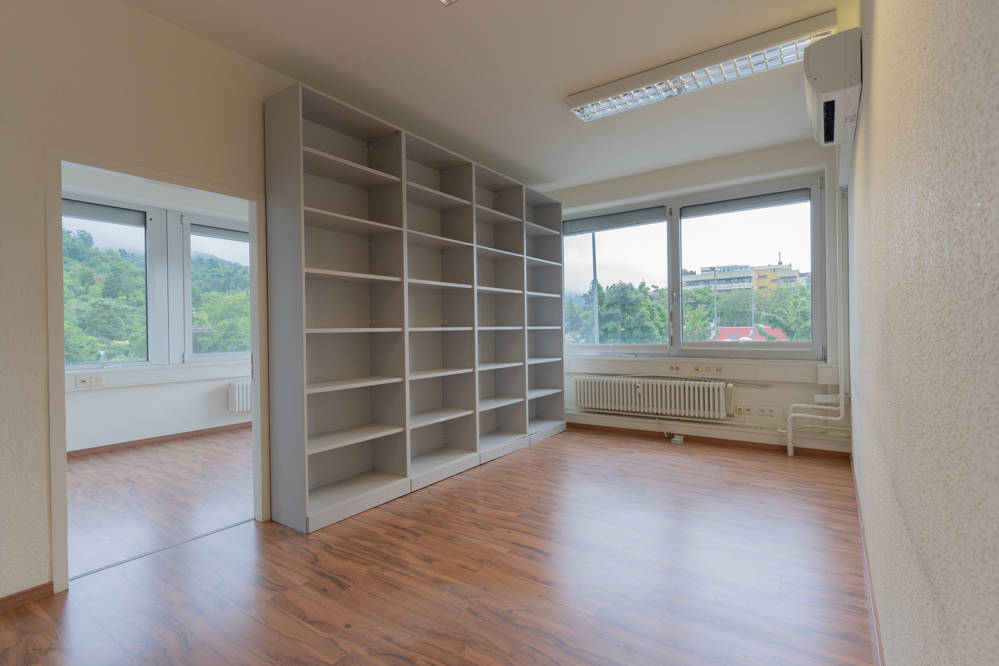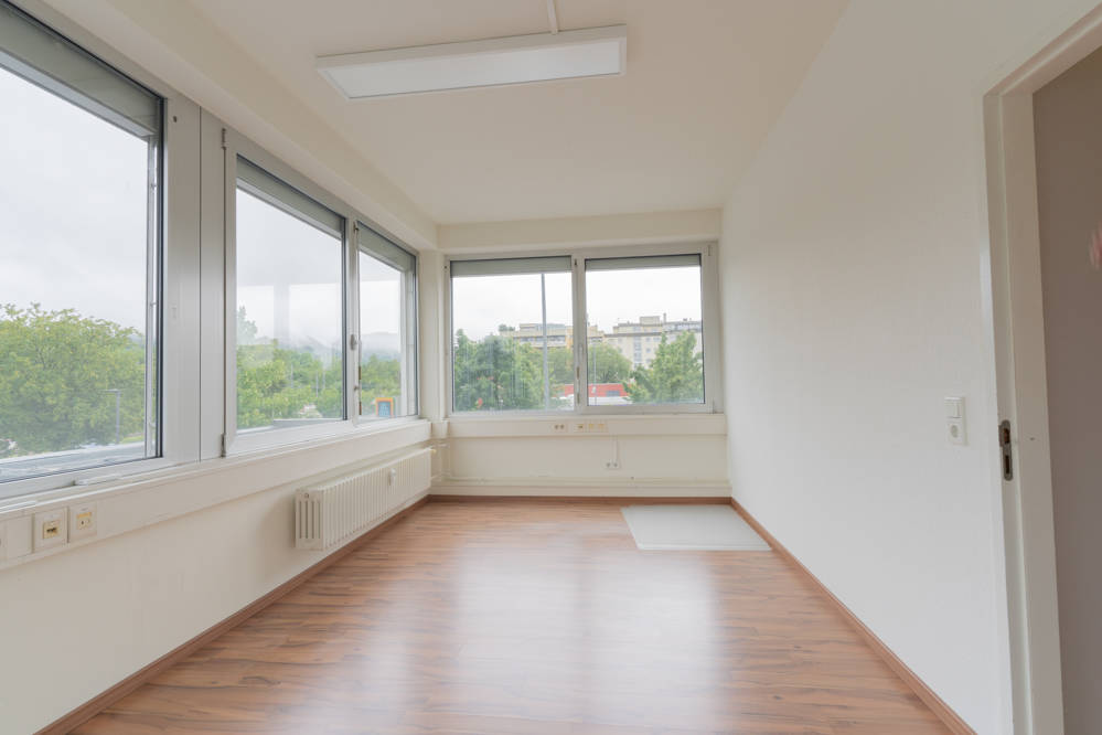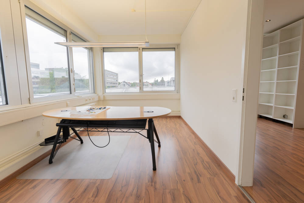 Das Büro wird in einem gepflegten Zustand übergeben, mit hellen Wänden und einem neuwertigen, strapazierfähigem Laminatboden.