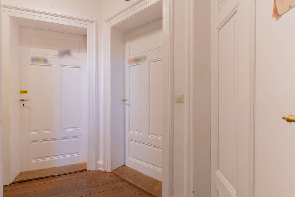Sie befindet sich im 2. OG eines in der Gründerzeit erbauten Mehrfamilienhauses, dass ursprünglich eine Küferei beherbergte.