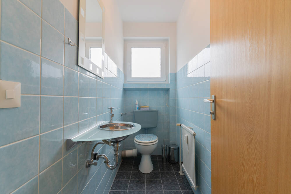 Die Küche und das Badezimmer sind jeweils mit Fenstern ausgestattet ebenso auch das separat liegende WC. Direkt neben der Küche befindet sich die Essdiele sowie ein separater und praktischer Abstellraum für Utensilien des täglichen Bedarfs. Alle Räumlichkeiten sind hell und freundlich.